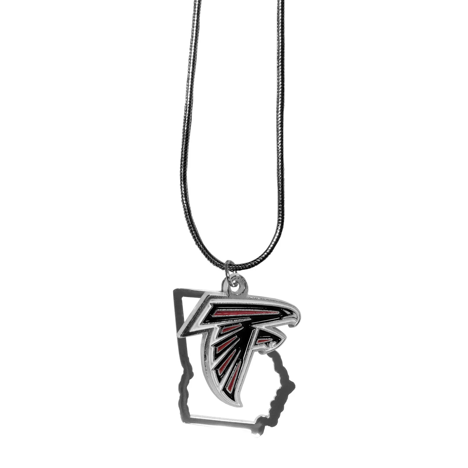 Get in on the trend! State themes are a trend that just keeps getting more popular and these necklaces take the state style and give it a sporty twist with a Atlanta Falcons added to the state outline charm. The come on a snake chain that is 18 inches long.